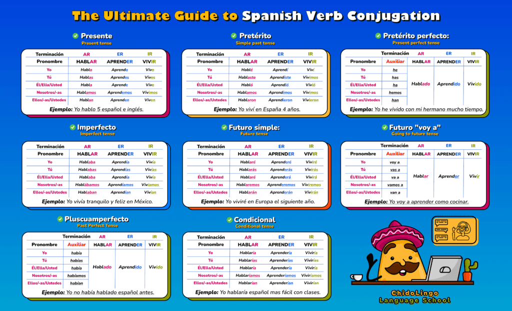 In this post, we’ll teach you how to conjugate regular verbs in Spanish in the three terminal groups: -ar, -er, and -ir.